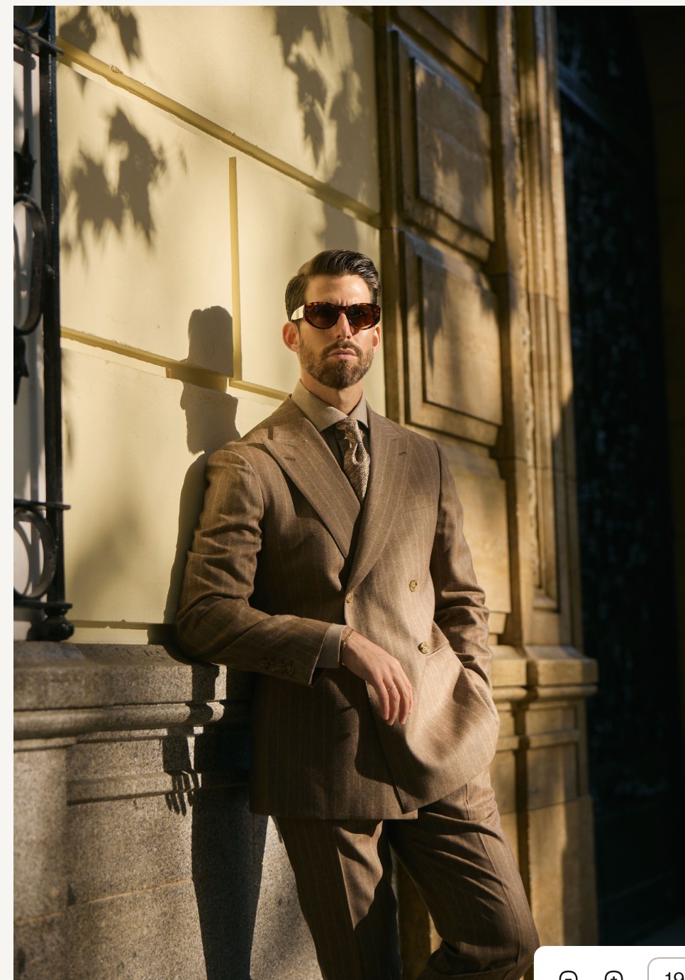 Mellembrunt dobbeltradet jakkesæt med pinstripes