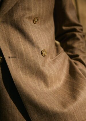 Mellembrunt dobbeltradet jakkesæt med pinstripes